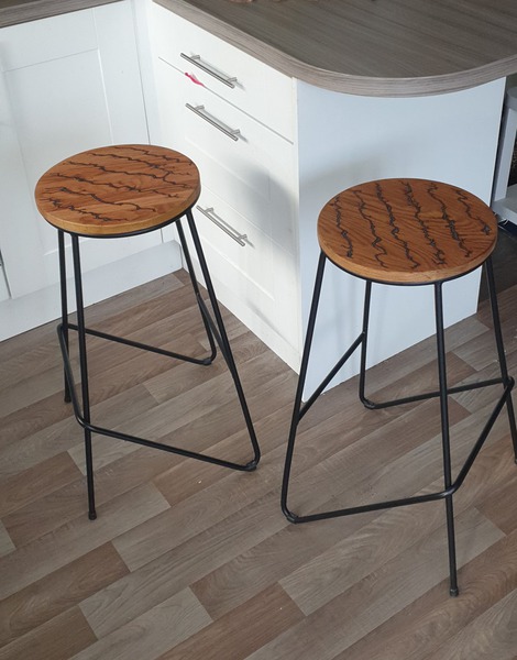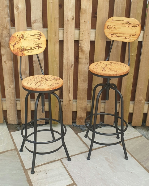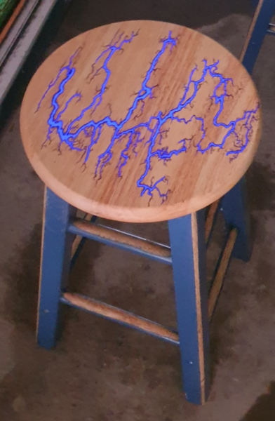 No two pieces are exactly alike and each design is therefore impossible to replicate. A set of four stools is a set that includes four one of kind pieces, each with its' own story. The intricacies of each design are decided throughout the trees entire life as the wood fibres grow closer and further apart giving the electricity a path from fibre to fibre, burning its way as it meanders across the surface.