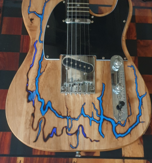 These lightning shaped branches are then filled with an epoxy resin, restoring tone and strength to the body whilst adding a new dimension to the aesthetic.
