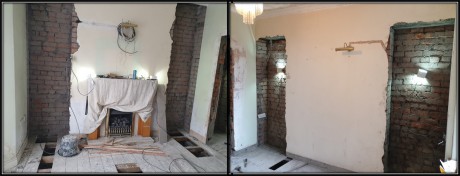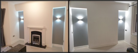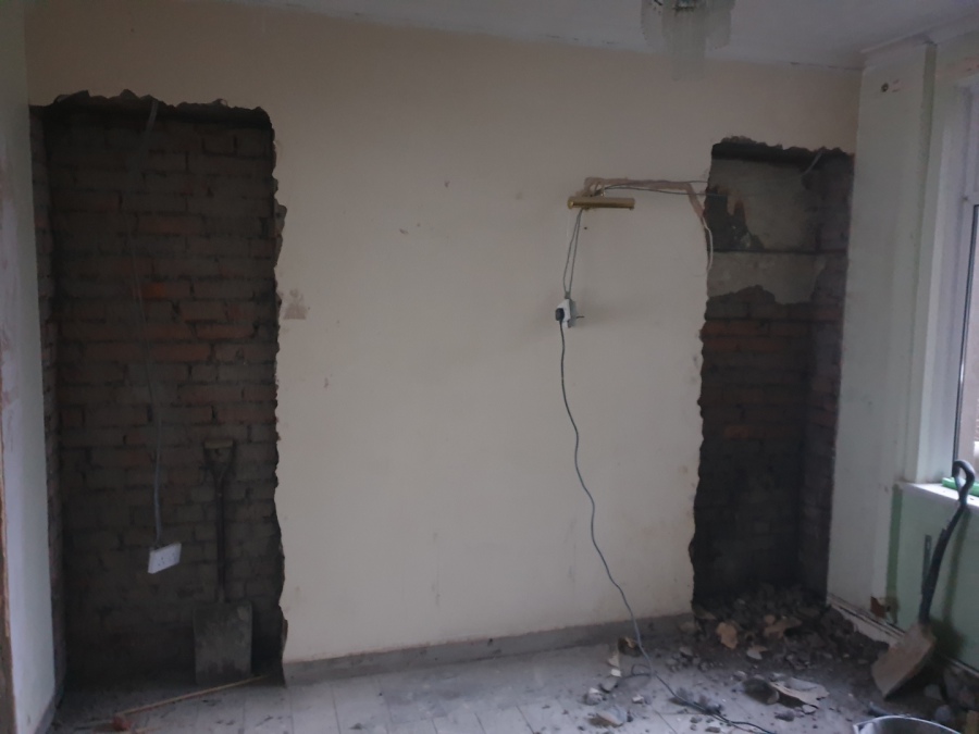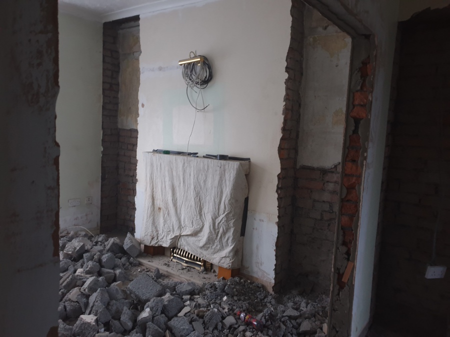 Below is an example of property that is being prepared for rental. After our in depth inspection we assertained from the pattern of cracks in the wall that there must be blocked up alcoves and a partition wall separating the two rooms. An additional day to the project allowed us to uncover 4 alcoves in total. The additional time spent to make these areas good was negligable due to the rooms needing plastering anyway. When all was said and done, the alcoves and knock through made the property feel far more spacious and alongside increasing the properties value, they also added functionality & character.